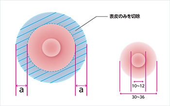 乳輪の周囲の皮膚を切除