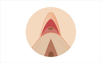 1/3から2/3が普段から露出している方もいれば、性的興奮によって勃起したときに包皮がむける方もいます。常にほとんど覆われていて、手でむいてみてむける方は仮性、むけない方は真性のクリトリス包茎になります。