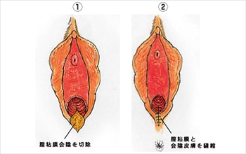 「膣粘膜縫縮術」を行います。これは膣粘膜会陰の切除と縫縮のみを行う施術です。